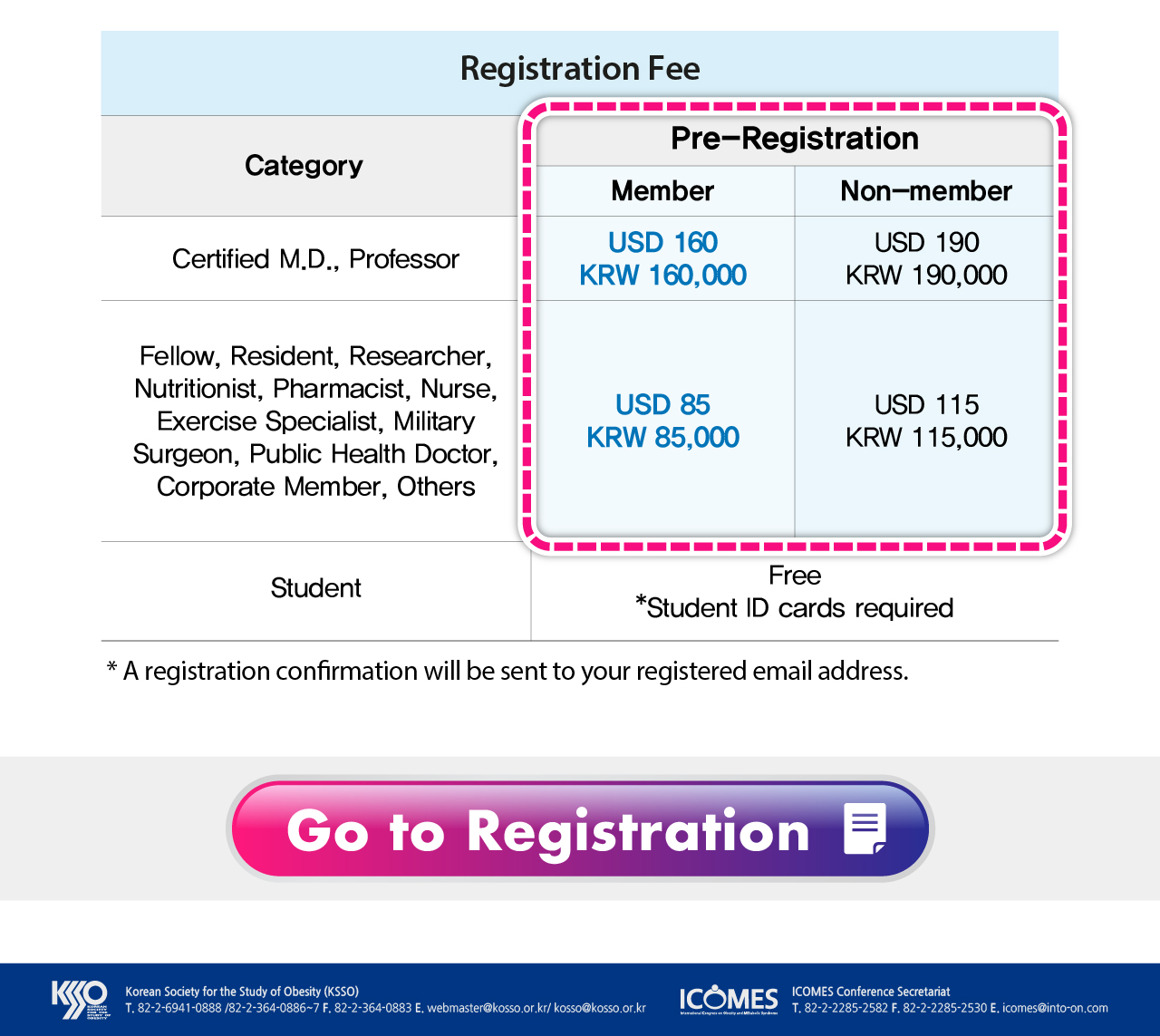 < Korean Society for the Study of Obesity >('http://icomes.or.kr/''hereinafter referred to as 'ICOMES 2021') processes personal information for the following purposes. The personal information being processed is not used for purposes other than the following purposes, and if the purpose of use changes, we will take necessary measures such as obtaining separate consent in accordance with Article 18 of the 「Personal Information Protection Act」.