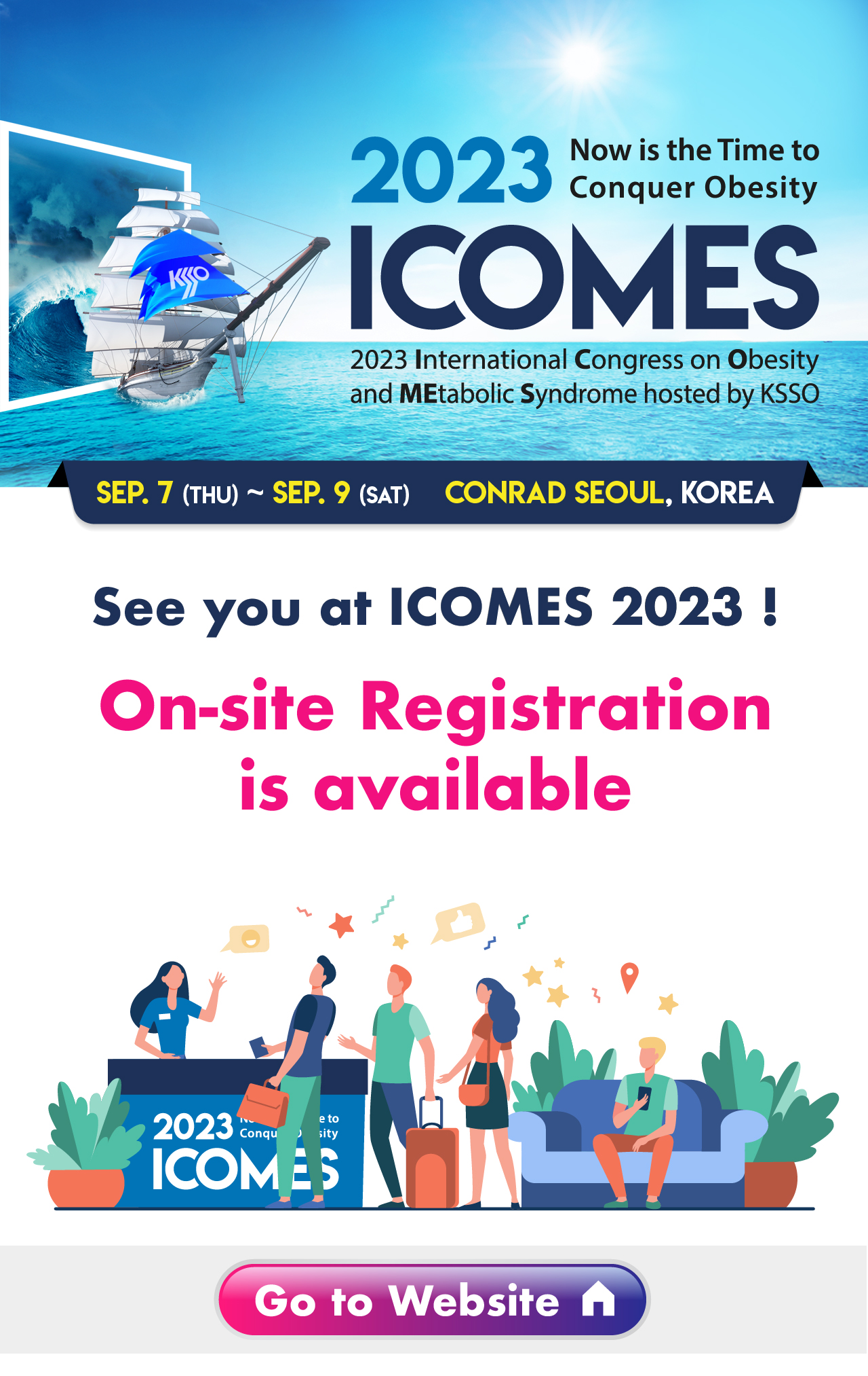 These Terms and Conditions provided by the ICOMES 2021 homepage http://icomes.or.kr/ (hereinafter called the "Society Homepage") operated by the Korean Society for the Study of Obesity (e-commerce business), are to regulate the website of the Society and the rights, duty and responsibility of the users for the use of internet-related services (hereinafter called "Services").